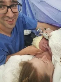The birth itself was amazing- undoubtedly the best experience of our lives. We had prepared a playlist which was played throughout our time in theatre and he arrived coincidentally to the sound of the first dance at our wedding (bridge over troubled water). Although our birth was not what we had initially envisioned, in the end it was simply perfect.